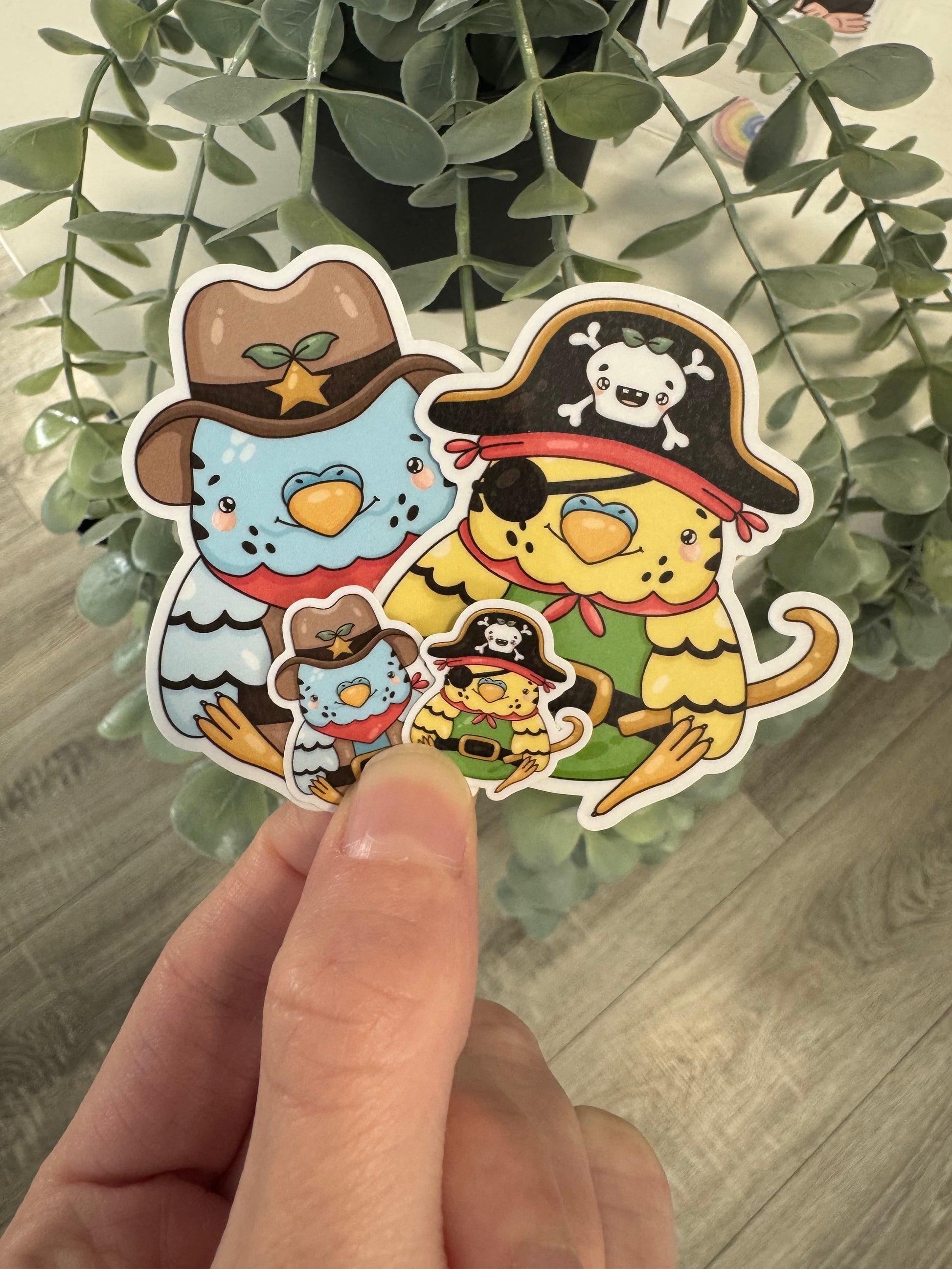 Kawaii Sticker Wellensittich Pirat und Sheriff